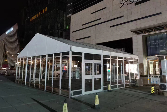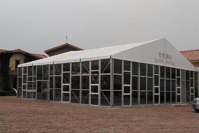 玻璃篷房是目前市场上比较多见的一款篷房产品,玻璃棚房因为其外形独特高端而深受广大客户青睐。宏泰篷房厂家所生产的透明玻璃篷房具有外观大气、透光性能强等优势特点,尤其适合一些高端展会、商业活动、婚礼或会议等活动。